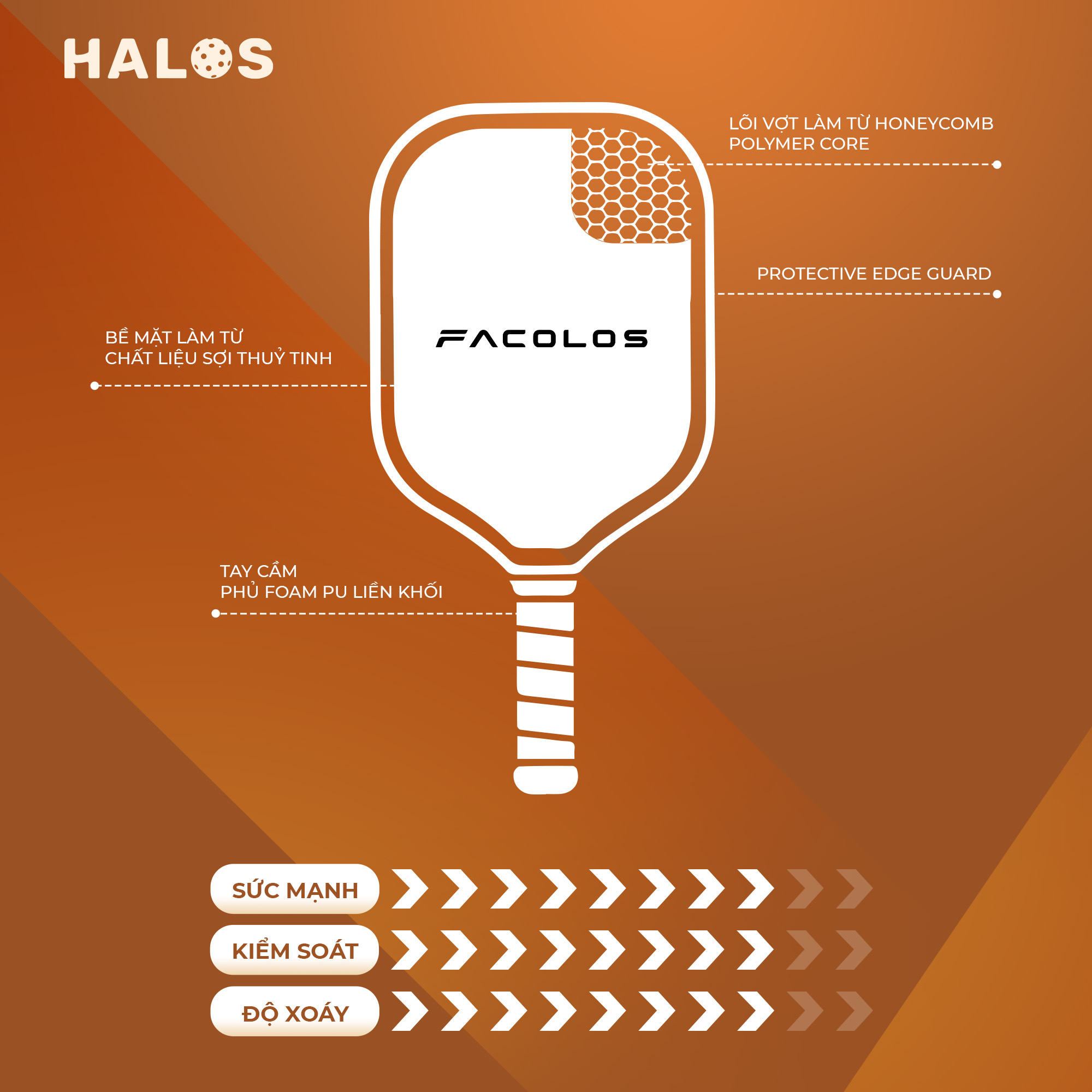 - Vợt Pickleball Facolos Elite X là lựa chọn hoàn hảo cho những tay vợt yêu thích sự cân bằng giữa sức mạnh và kiểm soát. Với thiết kế hiện đại và trọng lượng nhẹ, vợt này giúp người chơi linh hoạt trong từng pha bóng, phù hợp cho cả người mới và vận động viên có kinh nghiệm.