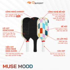 Vợt Pickleball Qsport Muse Mood sử dụng công nghệ ép nhiệt công suất cao, tăng điểm ngọt, ổn định trên từng cú đánh