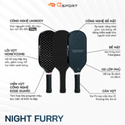Vợt Pickleball Qsport Night Furry sử dụng công nghệ ép lạnh, tăng thời gian lưu bóng, dễ dàng kiểm soát cho người mới chơi. Hỗ trợ ổn định cú đánh.