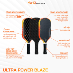 Vợt Pickleball Qsport Ultra Power Blaze sử dụng công nghệ ép nhiệt công suất cao, tăng điểm ngọt, ổn định trên từng cú đánh.