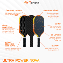Vợt Pickleball Qsport Ultra Power Nova sử dụng công nghệ ép nhiệt công suất cao, tăng điểm ngọt, ổn định trên từng cú đánh.